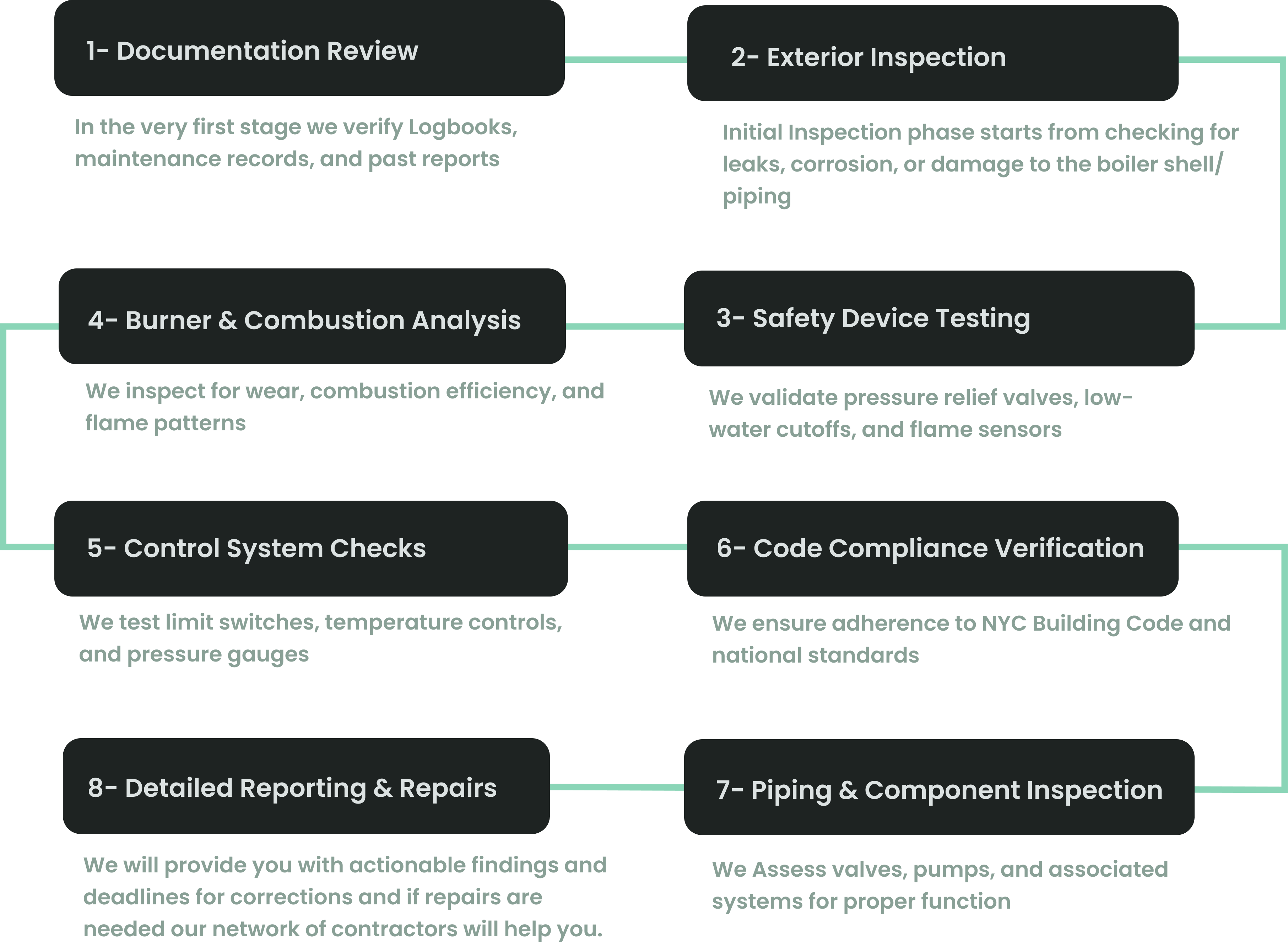 Regular Boiler Inspections are mandated by NYC regulations to maintain safety and compliance. Being compliant with Code is necessary for all stakeholders and if not there are a lot of circumstances everyone faces